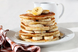 Pile of banana pancakes with honey