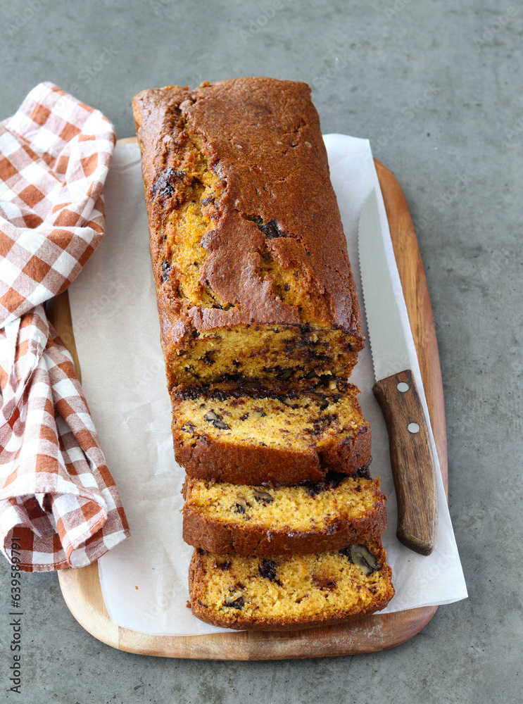 Pumpkin cake with chocolate and walnut