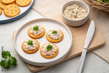 Butter cracker with tuna spread on cutting board,snack food