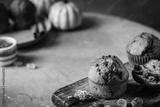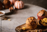 Homemade autumn pumpkin muffins with cinnamon and chocolate