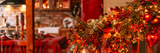 Christmas set table in living room and kitchen chalet ready for Christmas or New Year's festive dinner