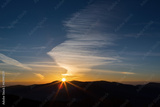 Red sunrise with blue sky and clouds