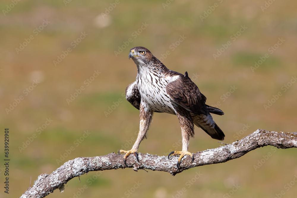 Bonelli's eagle (Aquila fasciata) closeup perched on a branch