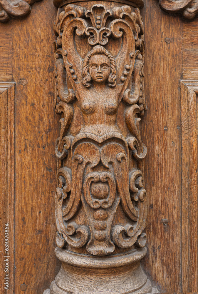 fragment of a carved wooden door