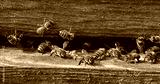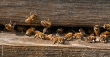 European Honey Bee, apis mellifera, cocoon of false ringworm released from the hive by the cleaners, Bee Hive in Normandy