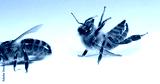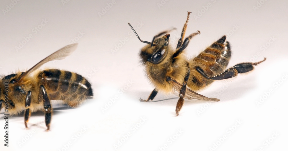 European Honey Bee, apis mellifera, Black Bee on a white background trying to turn around, Normandy