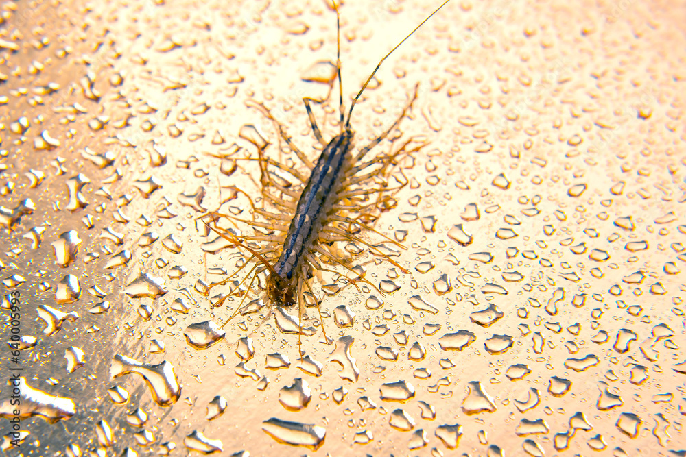 The Flycatcher scolopendra. Centipede flycatcher, insect predator Scutigera coleoptrata