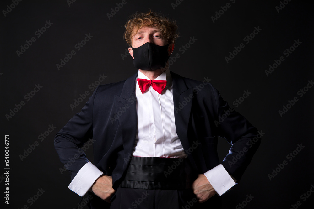 Closeup of man in mask, concept of viral infection. Theme of corona-virus epidemic.