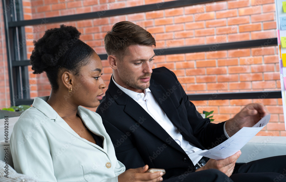 two business people working together