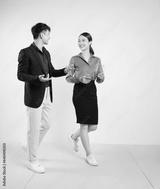 Photo of two young Asian business people on white background