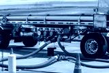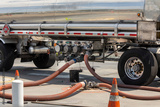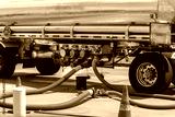 Gasoline being offloaded from a tanker truck into an underground storage tank at a gas station