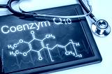 Tablet mit der chemischen Strukturformel von Coenzym Q10