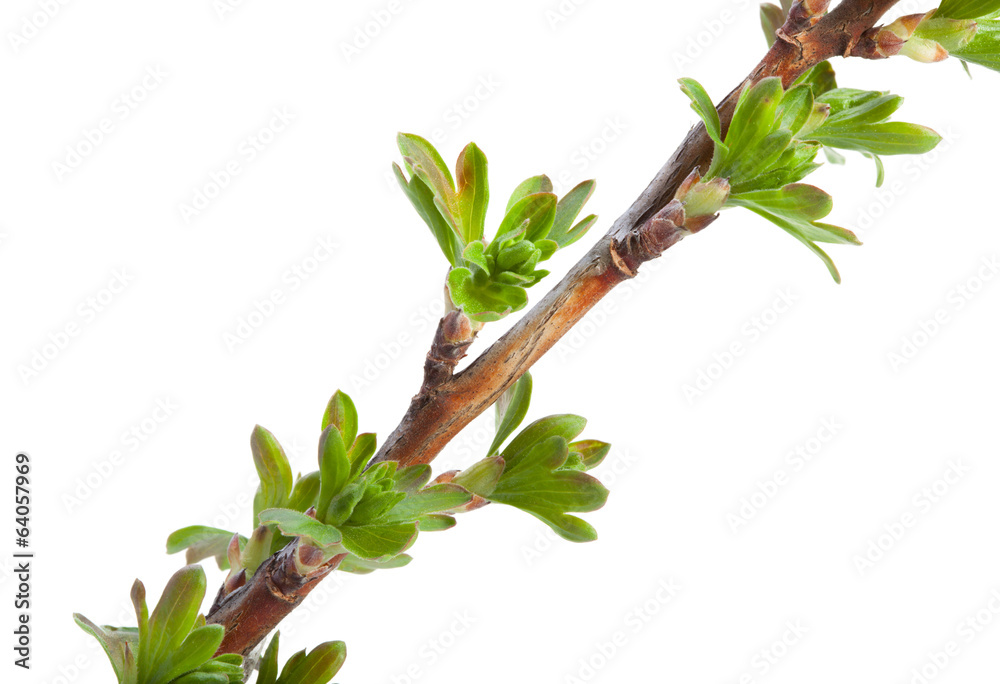 First spring leaves on jostaberry branch