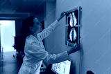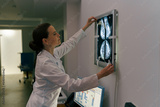 Female doctor neuroscientist analyzing scan MRI images in hospital. High quality photo