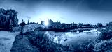 Chinese Bridge sunrise panorama at Godmanchester Cambridgeshire England