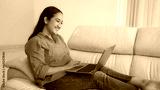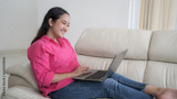 beautiful asian young woman wear casual sit on couch using computer laptop