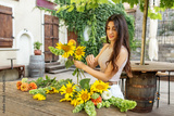 Florist at work. Woman making beautiful bouquet of different flowers. Workplace. Small business.