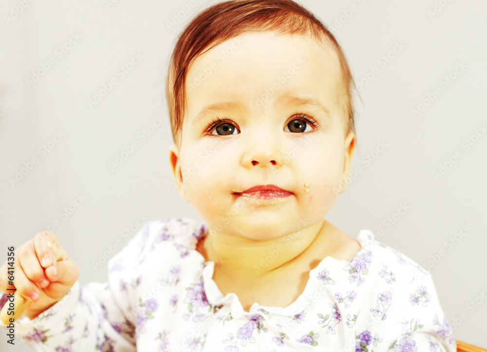 Small cute baby eating