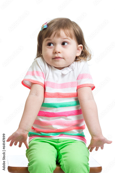 kid girl looks puzzled, isolated