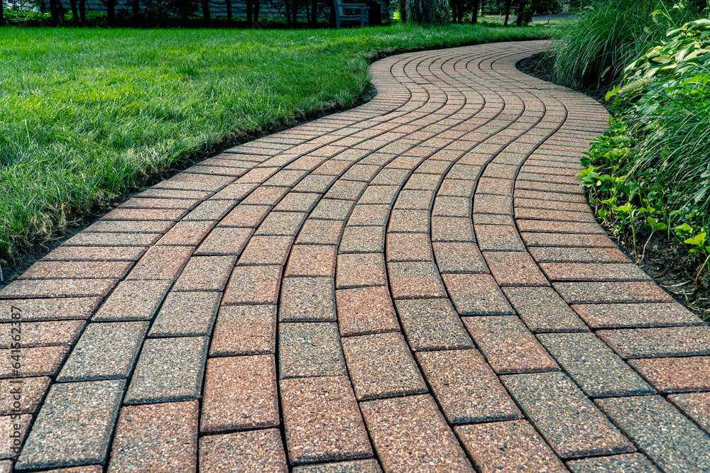 Brick pavers arranged in a curving pattern.