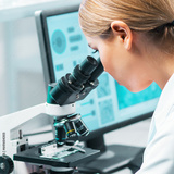 Professional scientist working on a vaccine in a modern scientific research laboratory. Genetic engineer workplace. Future technology, healthcare and science.