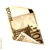 One bent and flying banknote 100 euro isolated on transparent png background. Finance concept