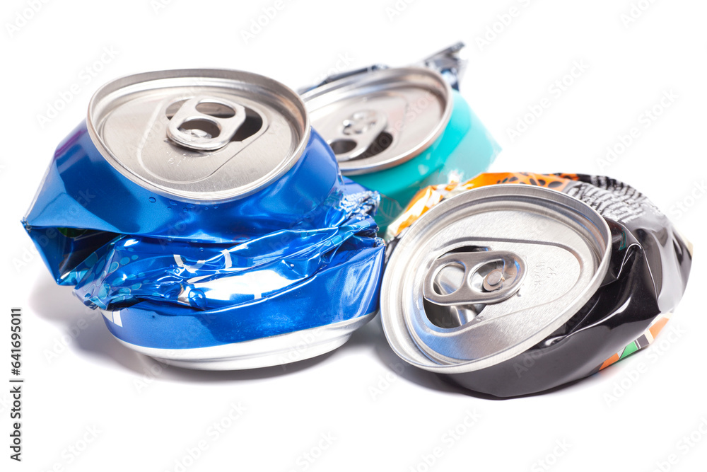 Empty crumpled cans from energy drink or beer