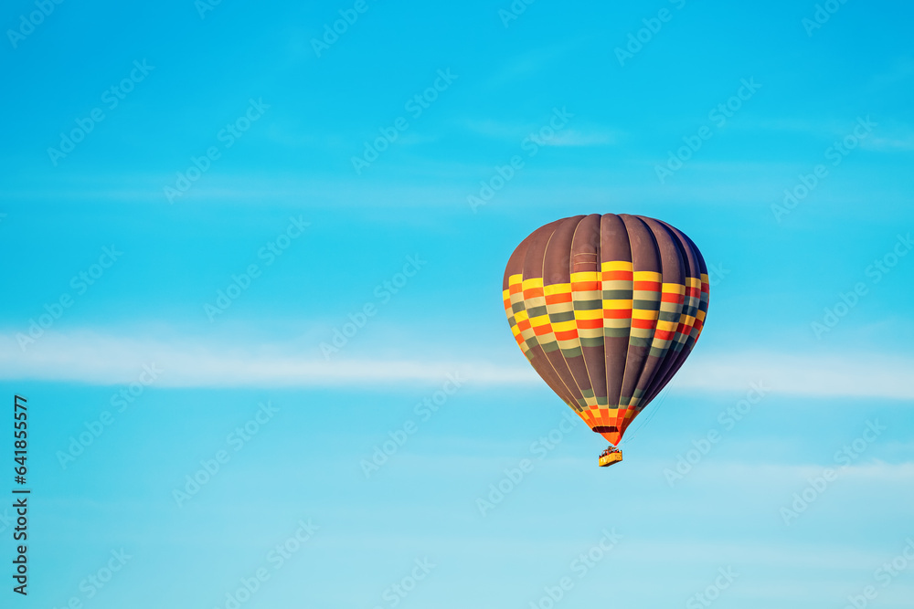 Hot air balloon in the blue sky. Cappadocia, Turkey. Postcard. Place for text