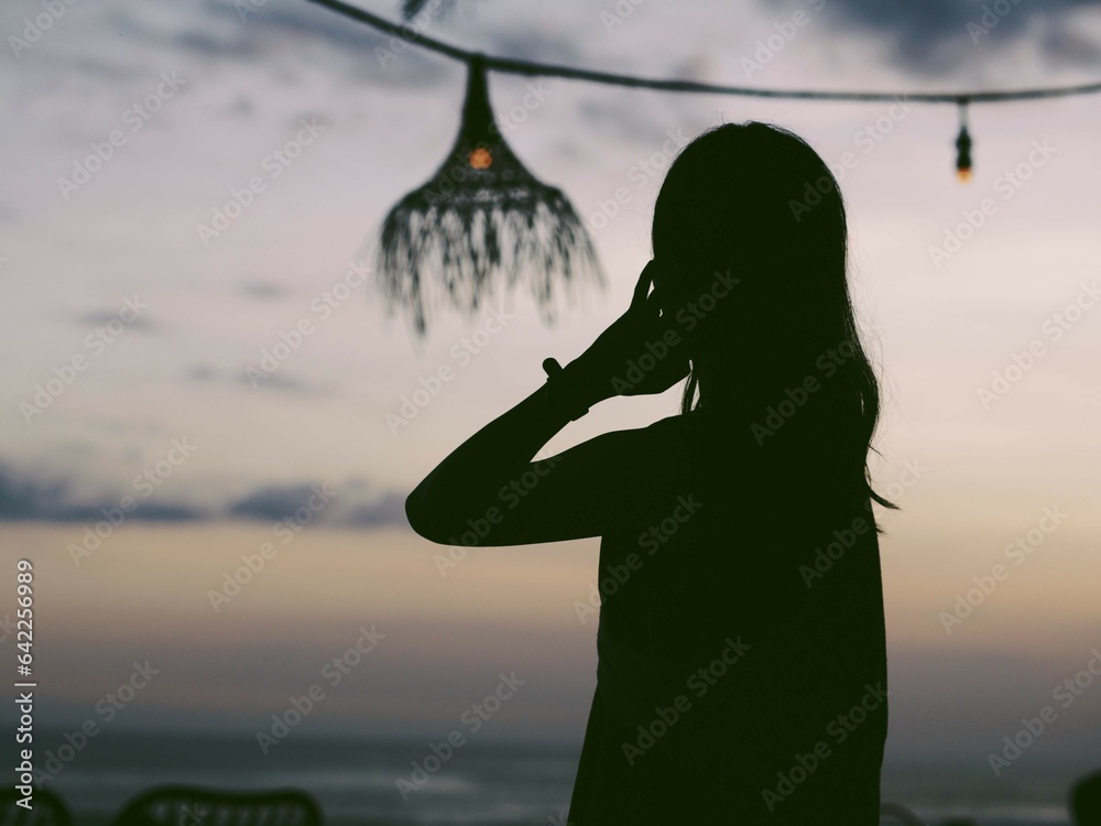 silhouette of woman in the bali beach