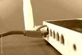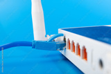 Internet router, Internet cable, data transfer, wi fi, online communication, blue background