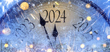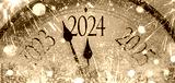 Countdown to midnight. Retro style clock counting last moments before Christmas or New Year 2024