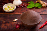 Shrimp Paste in glass bowl ,prawn sauce is a fermented condiment commonly used in Southeast Asian,It is primarily made from finely crushed shrimp or krill mixed with salt