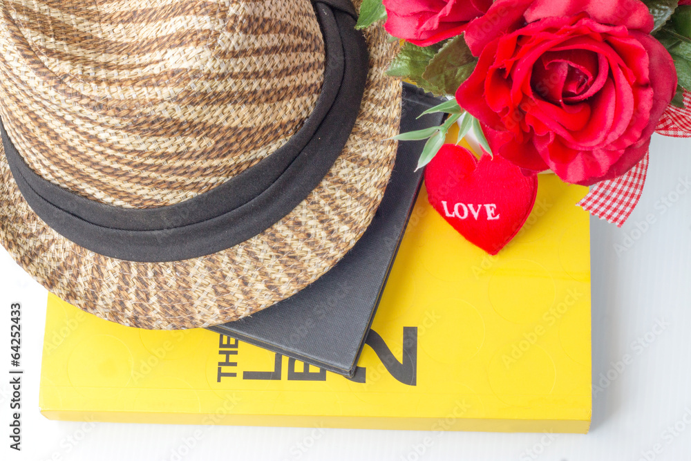 Fashion hat rose and book
