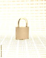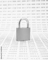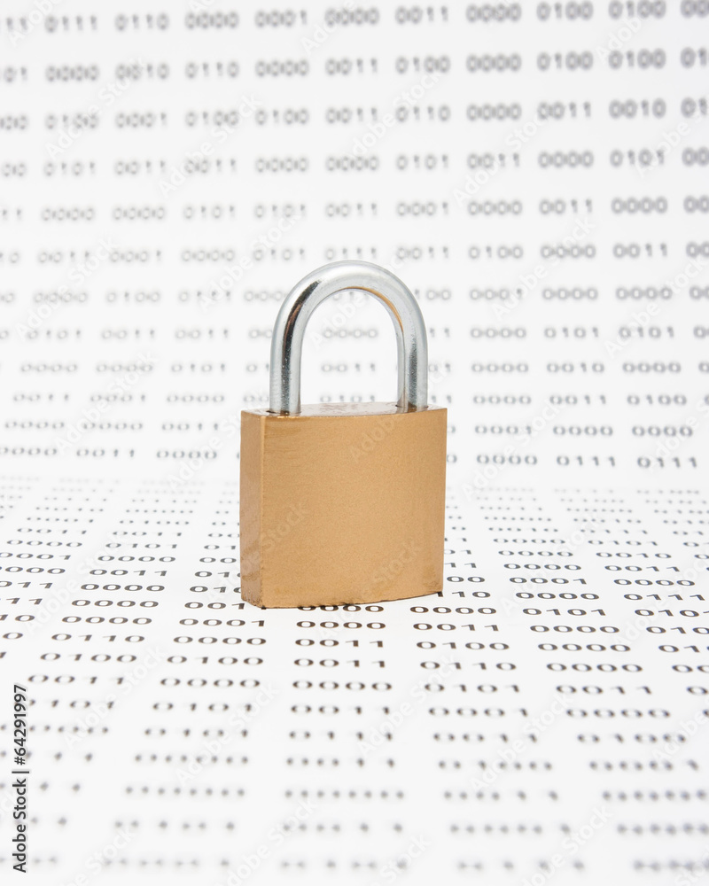 Locked padlock on binary code background