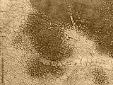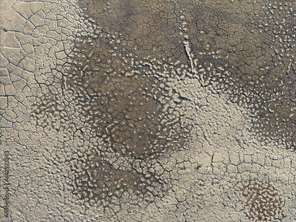 Post-industrial landscape. Bird's-eye view. Dried degraded surface. Desert landscape. Human impact on the environment. View from above. Industrial background.