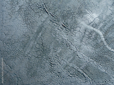 Post-industrial landscape. Bird's-eye view. Dried degraded surface. Desert landscape. Human impact on the environment. View from above. Industrial background.