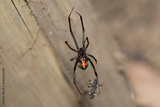 A venomous Brown Button spider (Latrodectus geometricus) on its web in the wild