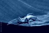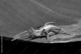 Close-up of a beautiful African Grass Huntsman Spider (Pseudomicrommata longipes) on a leaf on a warm summer's evening
