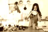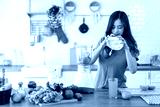 Portrait of beauty healthy asian woman making orange fruit smoothie with blender.girl preparing cooking detox cleanse with fresh orange juice in kitchen at home.health, vitamin c, diet, healthy drink