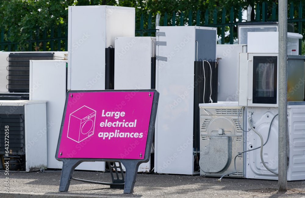 Old fridges freezers wash machines and kitchen appliances at rubbish dump