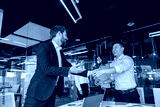 colleagues are shaking their hands in modern office during teamwork. High quality photo