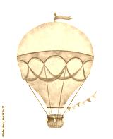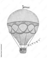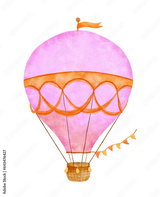 Hot air balloon with flags. Watercolor retro illustration isolated on white.