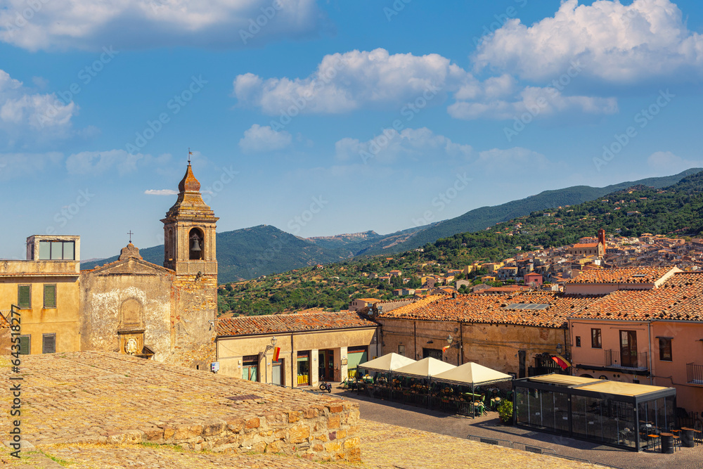 Small medieval town Castelbuono, Sicily. Madonie mountains. Summer time. August 2023.