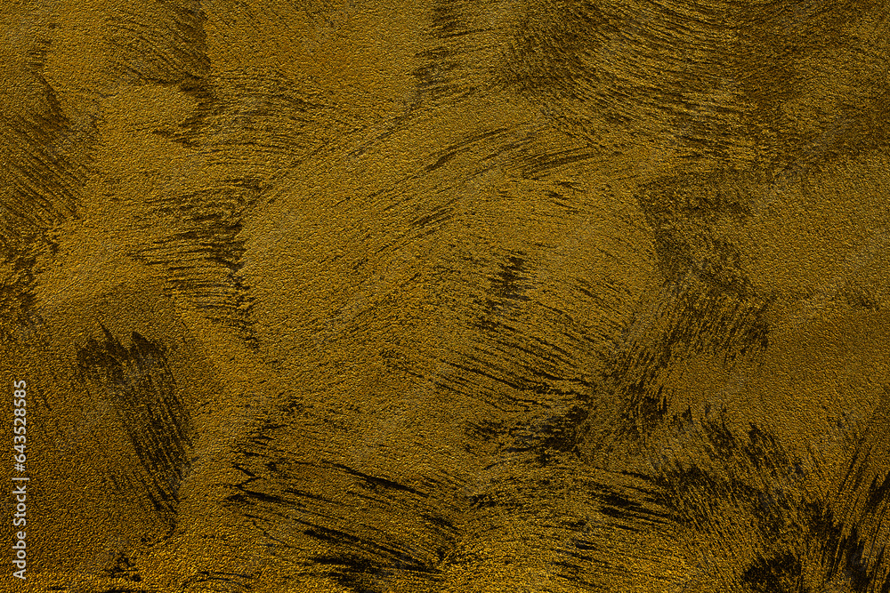 Texture of golden decorative plaster or concrete. Abstract gold grunge background.