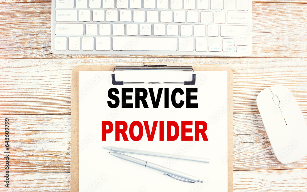 SERVICE PROVIDER text on clipboard with keyboard, business concept