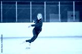 Concentrated and motivated teen girl in red sportswear training, skating on ice rink arena. Figure skating athlete. Concept of professional sport, competition, sport school, health, hobby, ad