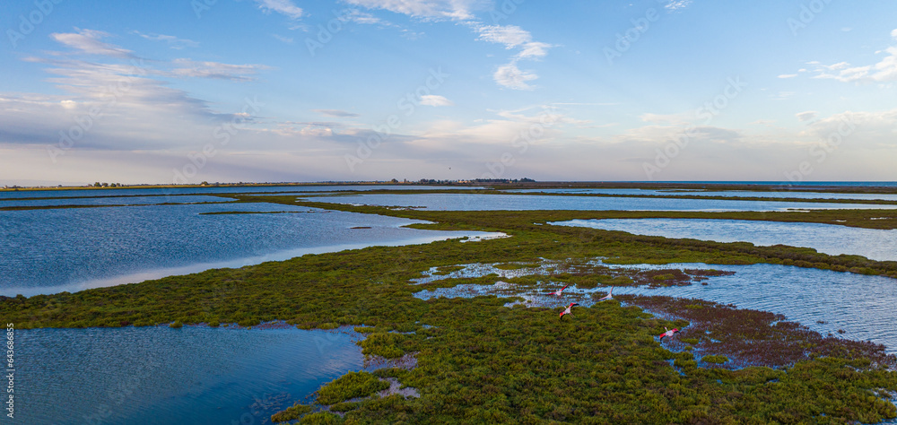 View of delta Ebro, the delta region of the Ebro River in the southwest of the Province of Tarragona in the region of Catalonia in Spain