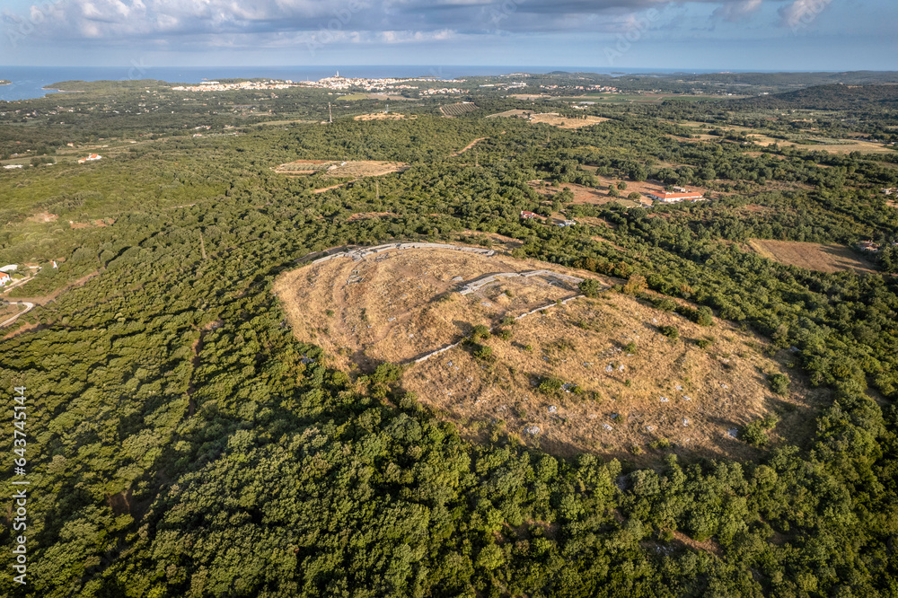 Aerial view of prehistoric hillfort Monkodonja in Istria, Croatia