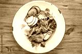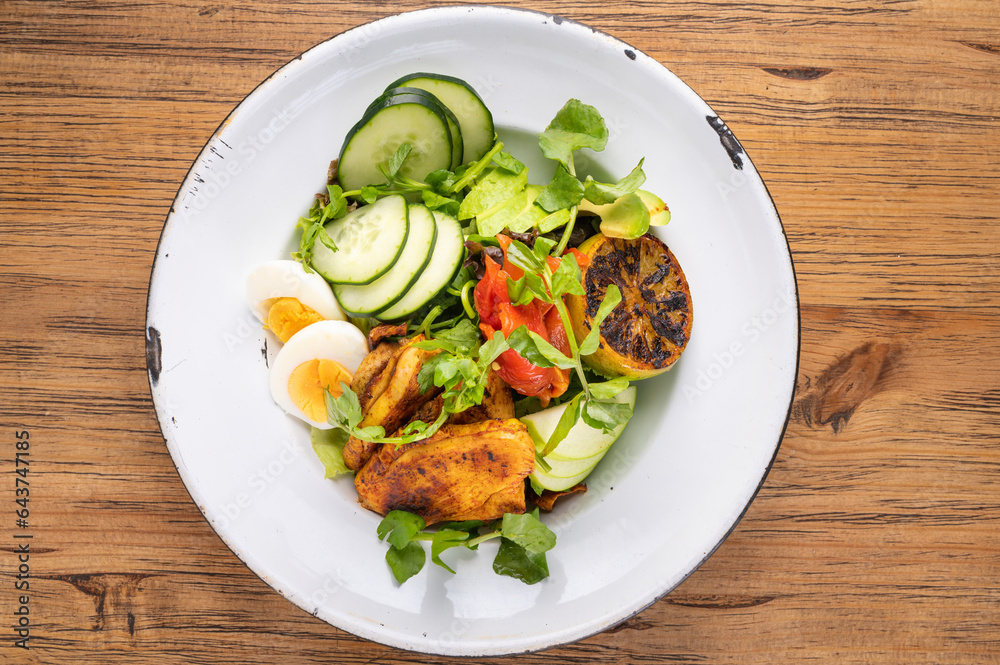 Flat lay of salad plate. Gourmet salad. healthy food concept.