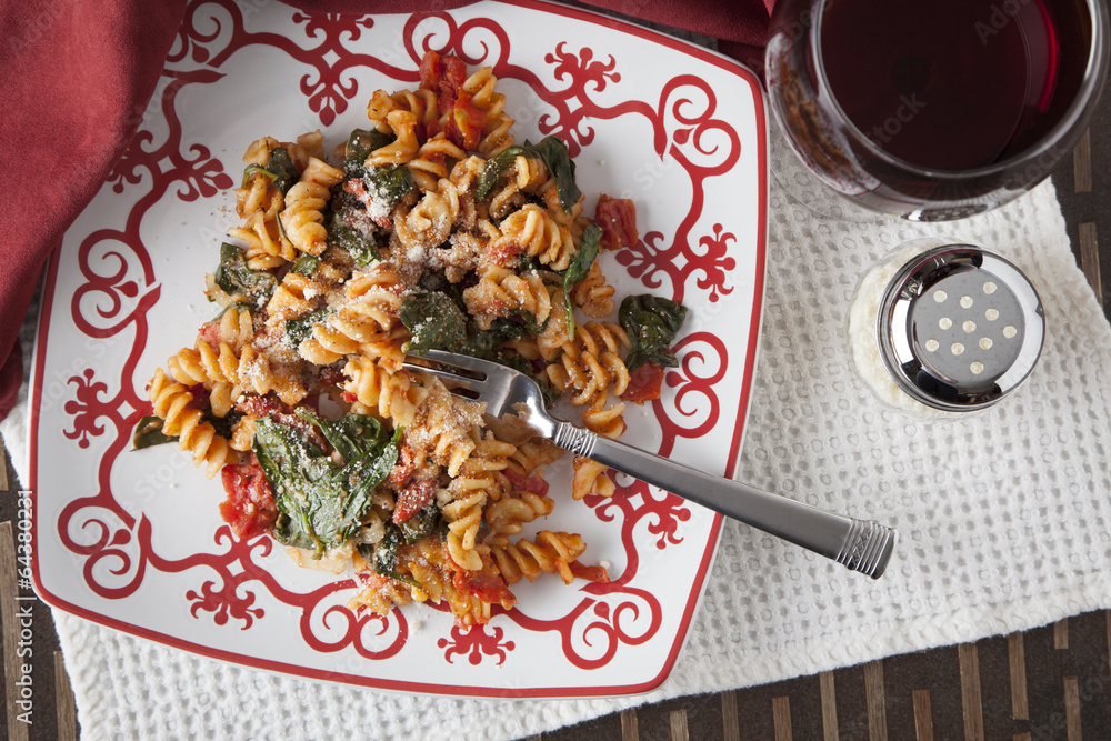Fusilli Pasta with Tomatos and Fresh Baby Spinach
